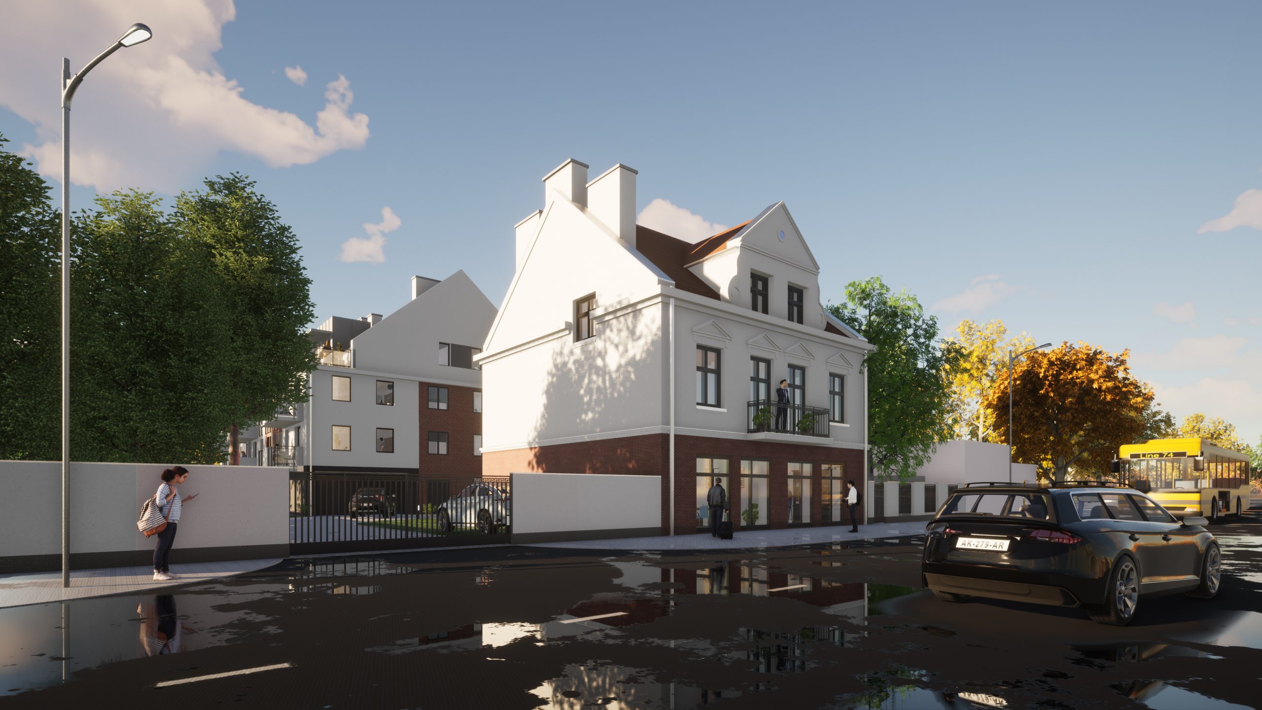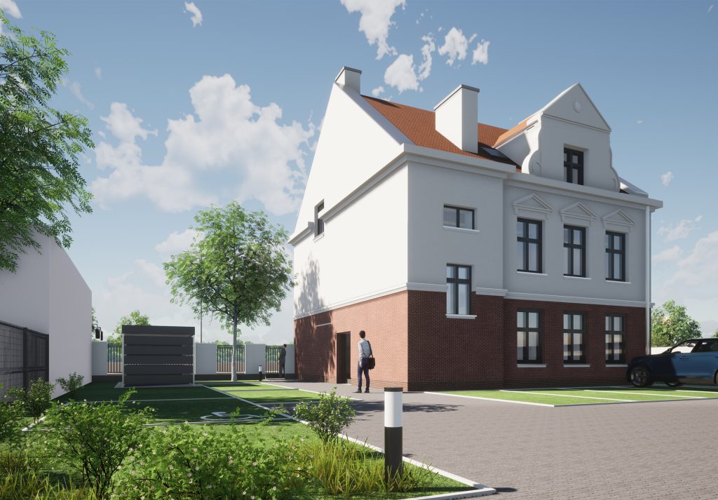 Jest to projekt obejmujący renowację zabytkowej kamienicy wraz z budową nowego budynku wielorodzinnego z parkingiem podziemnym.