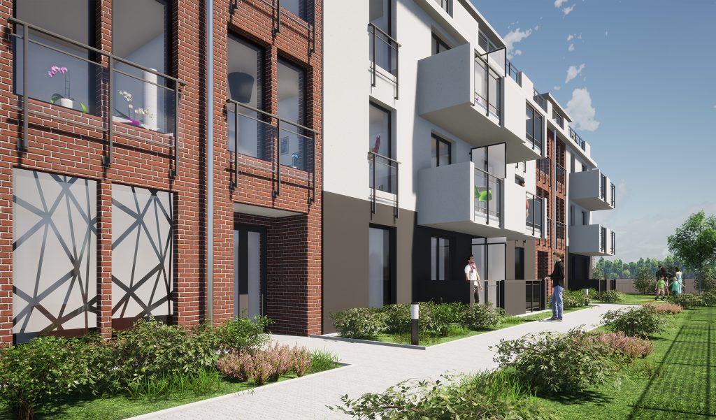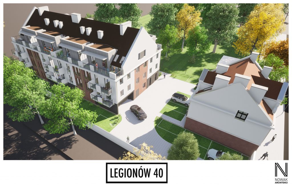 Na tyłach działki powstanie nowo projektowany 4 kondygnacyjny budynek mieszkalny wielorodzinny z windami oraz tarasami na ostatniej kondygnacji. W budynku znajdują się przestronne zróźnicowane mieszkania od kawalerek do mieszkań 4 pokojowych. Prócz tego został zaprojektowany garaż podziemny , ze stanowiskami postojowymi dla mieszkańców budynku. Budynek wpisujący się doskonale w tkankę miejską oraz jest nową , ciekawą przestrzenią do życia dla mieszkańców Kalisza.